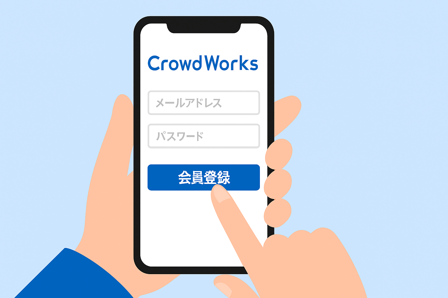 まずは**「ai 副業 クラウド ワークス 登録」**というキーワードで検索するか、公式サイトから無料会員登録を行います。メールアドレスやGoogleアカウントがあれば3分で完了します。
