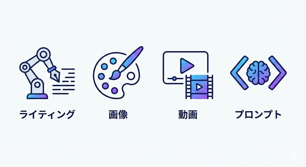 - スキルの穴埋め: 絵が描けなくても画像生成AIが、文章が苦手でも文章生成AIが、プロ並みのクオリティで代行してくれます。